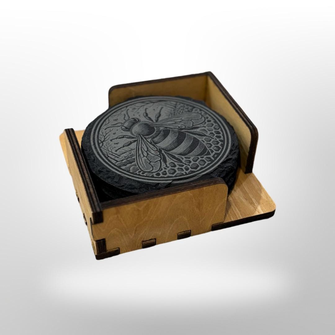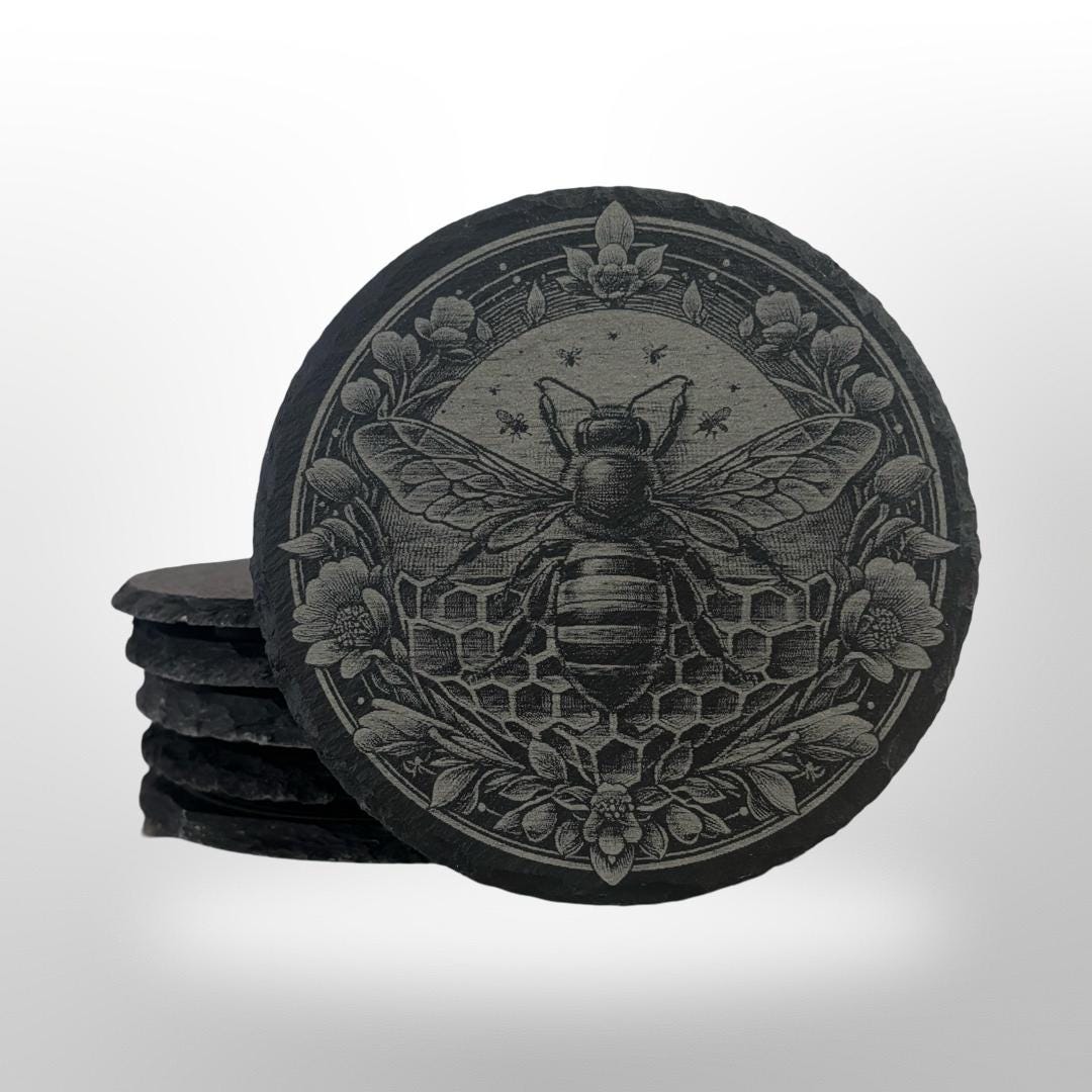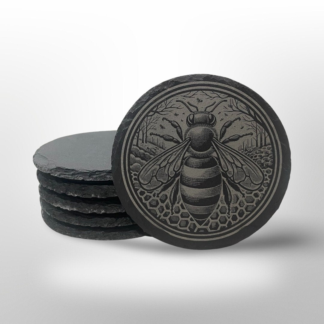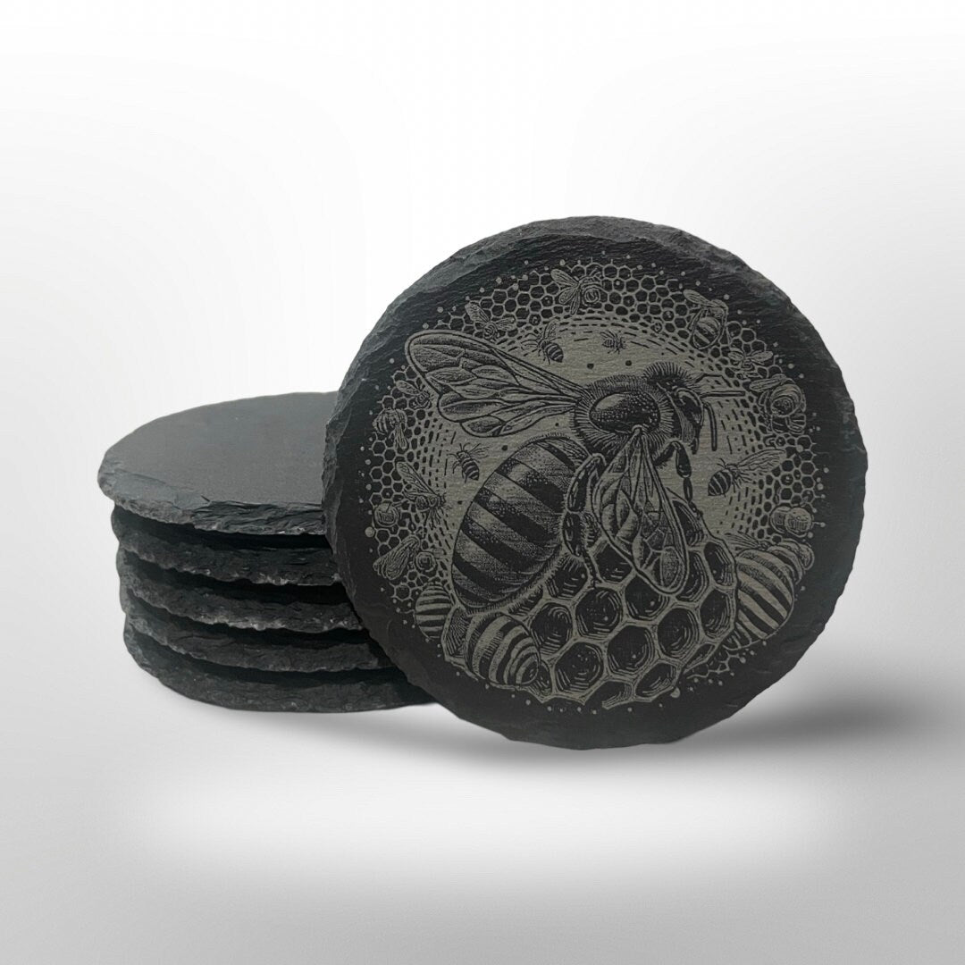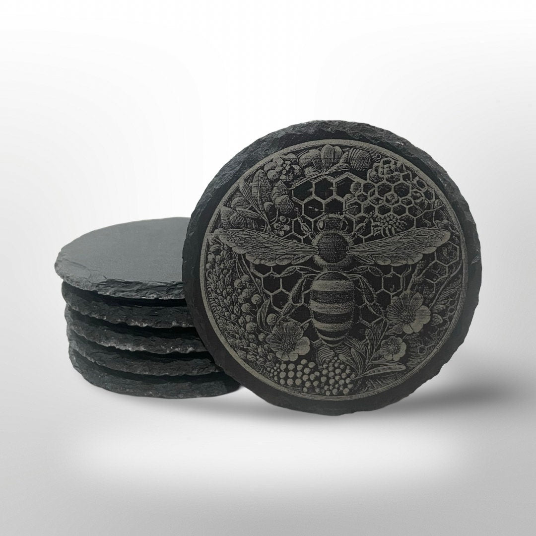 Honey Bee Slate Coasters - Bee Art - House Warming Gift - Wedding Gift - Bee Lover Gift - Birthday Gift - Kitchen Decor - Bar Decoration